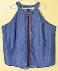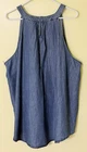 The EST. 1946 Women's Plus Sleeveless Round Neck Top in Blue is a stylish and versatile addition to any wardrobe. Made from a comfortable blend of Tencel and Cotton, this top features a flattering round neckline and sleeveless design, perfect for various occasions from casual outings to workwear. The embroidered accents add a touch of interest to the solid pattern, making it easy to care for with machine washable fabric. With a size range of 26W and regular fit, this top is a must-have for women looking for a classic and easy-to-wear piece that can be worn all year round. **PLEASE READ BELOW BEFORE PURCHASING** My adult daughter, Theresa, was diagnosed with Cirrhosis of the Liver and can not work. After 2 years she finally has insurance and a small monthly income. She received her liver transplant on June 6, 2025!!!!! Praise God!!!! She will still require care and travel to doctors for the foreseeable future. All purchases help us during this time. Being on a Fixed Income Myself, Every Item You Buy Helps Me Help Theresa heal from her surgery, pay the co-pay for her medication, purchase healthy food and so much more!!! Prayers are also needed, appreciated and felt every day. πππ Thank you! πππ β I strive for a 5 star rating! β I combine shipping! β If any problems occur please contact me before contacting eBay. β Actual colors may differ from pictures. β See all photos for details and condition before you commit to purchase. β What you see in the photos is exactly what you will be receiving. (Colors may differ slightly.) β Use your own discretion of condition before you commit to purchase. β I recycle shipping supplies to help save our environment. β β As Is β β No returns β β Shipped with USPS β β I have other listings, please donβt forget to check them out!