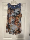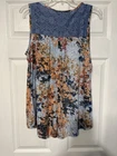 Add a pop of color to your wardrobe with this Est. 1946 tunic/top. The sleeveless design and lightweight polyester blend material make it perfect for summer and spring. The collarless round neckline and lace insert accents add a touch of bohemian flair to this colorful piece. This blouse is perfect for both casual and formal occasions and is available in a women's size medium. Hand wash only to keep it looking its best. Get ready to turn heads with this stylish addition to your wardrobe. 367