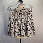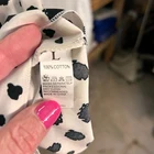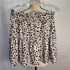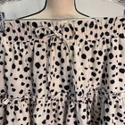 This stylish skirt is made of high quality cotton fabric with a canvas texture. The playful polka dot pattern in black and white adds a touch of designer flair to any outfit. The skirt features a flattering flare style with ruffle accents, mid-rise waist, and elastic waistband for comfortable wear. Perfect for any occasion, whether it's a wedding, casual outing or business meeting. The skirt is lined and has stretch for a comfortable fit. Available in size M, this regular fit skirt is a must-have for any woman's wardrobe.