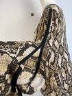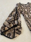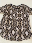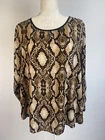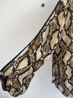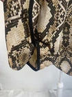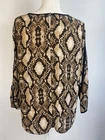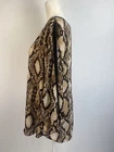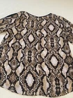 Add a touch of wildness to your wardrobe with this EST. 1946 women's blouse top. The long sleeves and cold shoulder design complement the round neckline and buckle closure, giving you a chic and stylish look. Perfect for any occasion, whether it's a party, casual wear, or even workwear. The lightweight fabric adds to the comfort of this tunic, making it perfect for all seasons. The brown snakeskin print adds a unique touch to this blouse, making it a must-have item for any fashionable woman out there.