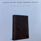 The ESV Large Print Wide Margin Bible features a TruTone imitation leather cover with an olive Celtic cross design. It includes large print text in English Standard Version, with 1568 pages. Published by Crossway in 2018, it weighs 42.5 oz and has dimensions of 9" in length and 6.2" in width. It is suitable for those interested in the ESV translation for general reading and study purposes.