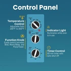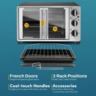 25L XL CAPACITY: Fits 6 slices of toast and cooks up to an 11lb roast. Three rack positions plus 0.9cuft capacity can fit up to a 12" pizza with interior dimensions of 13.25"x 13.50"x 8.95". FRENCH DUAL DOOR DESIGN allows you to open one or both doors at a time saving precious counter space. Three rack positions allow you to cook multiple dishes at once. PRECISION COOKING CONTROL: The built-in heat selector switch allows you to select numerous cooking features for Baking, Broiling, Toasting, Pizza and Keep Warm. ADJUSTABLE TIMER: The oven includes a 60-Minute timer with indicator bell and toast shade settings. 1500 WATTS OF POWER: Optimize your cooking needs with an adjustable thermostat from 200°F to 450°F and 1500 watts of cooking power