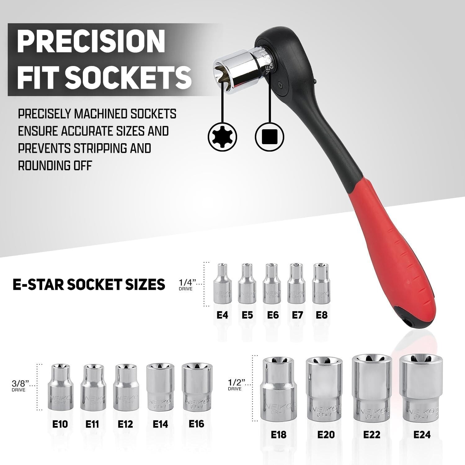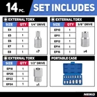 The E-Torx Socket Set by TORX is a 14 piece set of external Torx sockets ranging from E4 to E24. Made of chrome vanadium steel with chromed steel finish, these sockets offer durability and corrosion resistance. The non-ratcheting design and star socket type make them easy to use for various mechanical tasks. Designed for metric measurements, this set is a valuable addition to any toolkit for professionals and DIY enthusiasts alike.