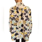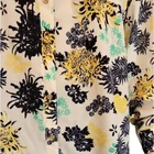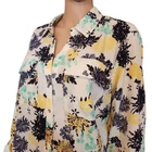 This is a pretty blouse in navy, yellow, and green florals on a white background. There are no stains or holes, but note that even though it has gold tone buttons, they are just for show - the blouse goes overhead and does not unbutton. The pattern is playful and reminds me of Lilly Pulitzer patterns! Approximate Measurements Chest: 26" Shoulders: 19" Sleeves: 22" Length: 28"