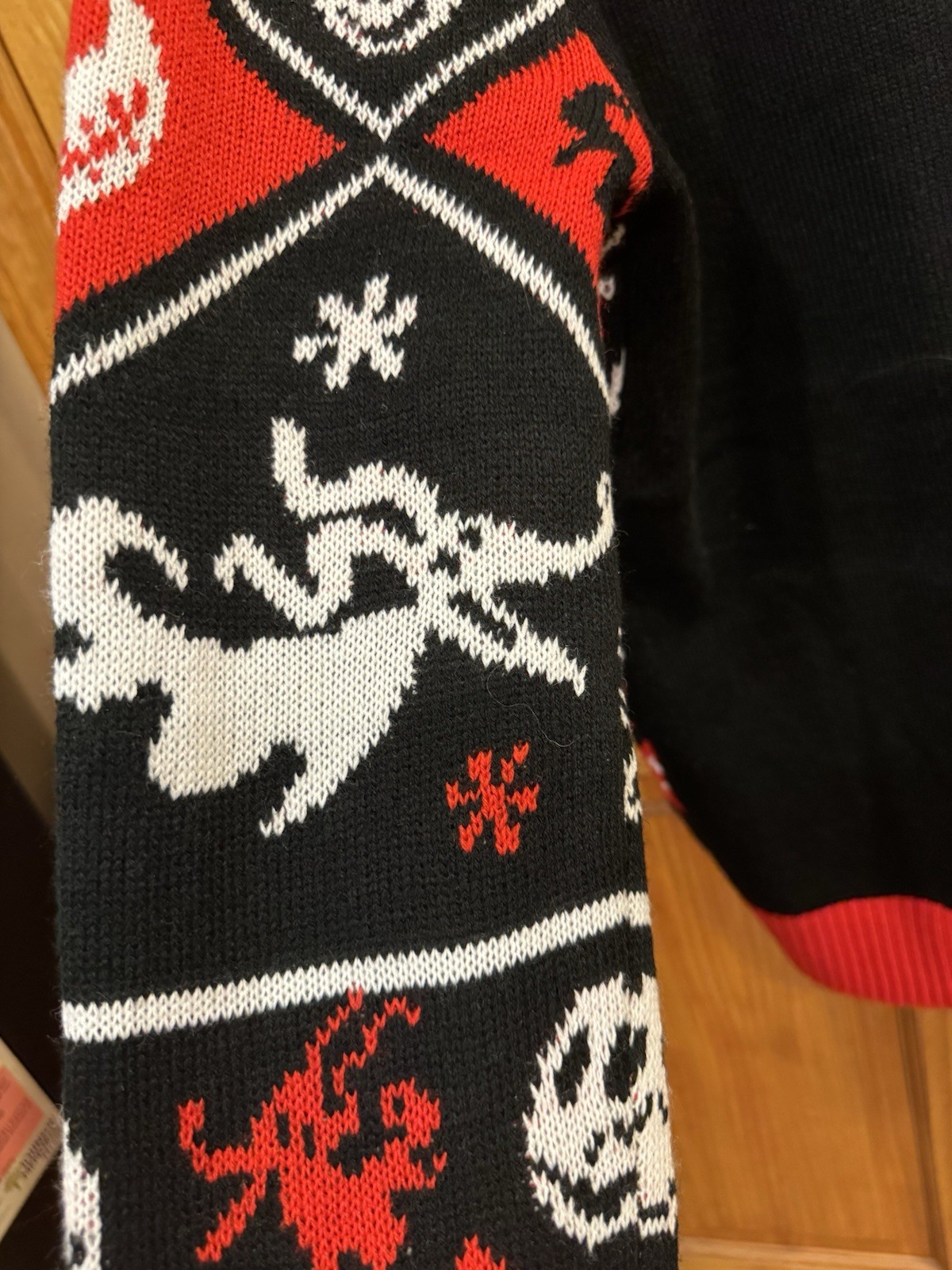 This EUC Disney The Nightmare Before Christmas Jack Skellington sweater in size Large features a crew neck and long sleeves, making it perfect for a party or cocktail occasion. The multicolor acrylic sweater showcases the iconic character Jack Skellington from the Christmas-themed film, making it a fun and stylish addition to your winter or fall wardrobe. With its regular fit and pullover style, this Disney sweater is a comfortable and festive choice for both men and women.