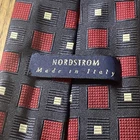The product is a men's necktie from Nordstrom, featuring a geometric pattern in multicolor silk. Made in Italy, this designer tie is woven with 100% silk fabric, exuding a preppy style perfect for formal occasions. With a classic width and vintage appeal, this tie is sure to elevate any man's wardrobe with its sophisticated and timeless design.