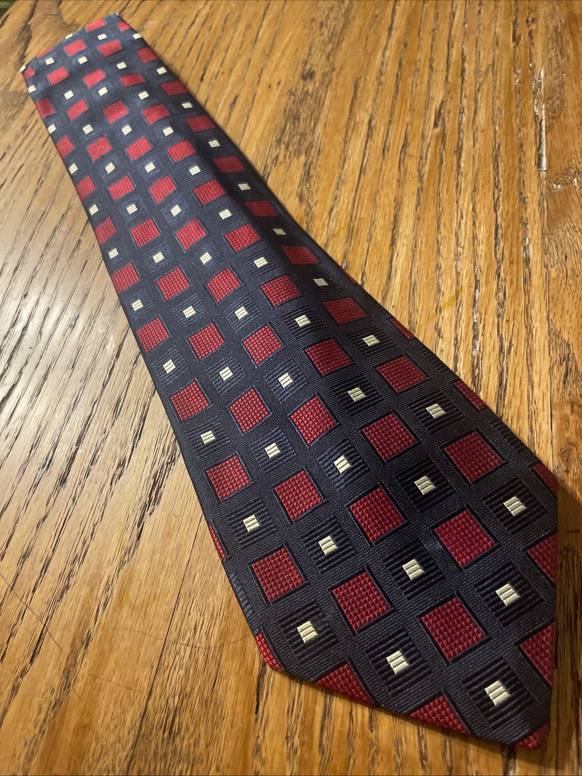 $ 4.65EUC Kenneth Cole Woven Geometric Silk Tie Necktie Hand Made