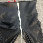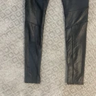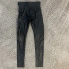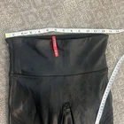 EUC Spanx Faux Leather Moto Leggings, Size Medium Iconic Spanx faux leather moto leggings in sleek black! These bestselling leggings feature trendy moto-inspired quilted detailing that elevates them beyond basic faux leather pants. The high-waist provides shaping and support while the faux leather gives you that luxe look. Perfect with oversized sweaters, tunics, or blazers for a sleek, modern outfit. Originally $110 Details: Size Small Body: 87% nylon, 13% elastane with polyurethane coating Lining: 80% polyester, 20% elastane High-rise waistband for smoothing support Quilted moto panels on thighs and knees Faux leather finish with slight sheen Stretchy, comfortable fit Measurements (approximate, laid flat): Waist: 12.5" across (very stretchy) Rise: 8" Inseam: 28"
