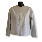 This is a sweet, light weight baby blue cropped blouse, with long sleeves and a button back detail. There are no issues with the piece, it's in great shape! approximate measurements below - Chest: 19" Length: 20" Shoulders: 14.5" Sleeves: 21.5"