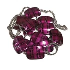 A cute royal purple necklace with silver tone hardware. Reminds me of Y2K business casual wear 😂 No issues and it measures approximately 36".