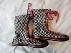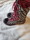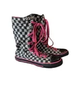 EUC Y2K Vintage Bomber Dogs Checkered Fold Down Tall High Top Sneakers Size 8