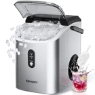 34lbs/24H Nugget Ice Maker Countertop with Handle for Home/Kitchen/Party/Camping/RV 6 MINS ICE-MAKING & NUGGET ICE: Quench your thirst fast with efficient EUHOMY nugget ice maker! You can enjoy fresh sonic ice and cold drinks in 6-8 mins. Featuring a 1.2Qt water tank, it easily makes up to 34 lbs of ice daily and has a 1.8 lbs removeable basket. The unique, crunchy soft pellet ice won't hurt your hands or mouth and cools drinks quickly while retaining their taste, providing a joyfully chewable experience. It's so perfect for icing coffee, smoothies and munching on ice as a snack COMPACT & PORTABLE DESIGN: Our nugget ice maker has a sturdy handle, a compact size (LWH) of 9.45x11.61x12.99 inch and pretty light weight. Those features make our pebble ice maker easy to carry and so perfect for any occasions such as Home/Office/Camping/Party/Bar/RV. Another user-friendly design is the ice scoop holder on the back that allows easy storage when not in use, the large viewing window allows direct monitoring of the ice-making process. Buy now and enjoy refreshing drinks all summer long SMART & AUTO-CLEANING: Unlike other ice makers that run in cycles, aging the internals. EUHOMY nugget ice maker features "ICE FULL" indicator to stop ice-making and remind you to take out ice. The "ADD WATER" will alert you to add water. Pellet ice maker will run a 15 mins self-cleaning by a simple press the "Ice/Clean" for 3s after adding water. The top cover is also easily lifted for more thorough cleaning. Our double cleaning design provides a safe and clean ice-making experience QUIETER & ENERGY-SAVING & ECO-FRIENDLY: Our countertop nugget ice maker excellent at refrigeration while running at less than 50 dB noise, ensuring a comfortable and quiet environment for working or sleeping. With its low energy consumption of about 1 kWh/8H, you'll save more on electricity bills while enjoying refreshing drinks. And by choosing our eco-friendly ice maker, you'll make a positive impact on the environment. Wow your guests before they try delicious sonic ice ETL CERTIFICATION & SERVICE PROMISE: Our nugget ice maker is ETL certified to ensure top-quality and safety. You can use pebble ice maker with confidence. Our mission is to provide premium ice makers at reasonable prices. We offer 1-year after-sales service from the original purchase date & technical support. Suppose you have any questions about using our pellet ice maker, please reach out to us anytime! Our customer teams are always ready to help you with anything you need