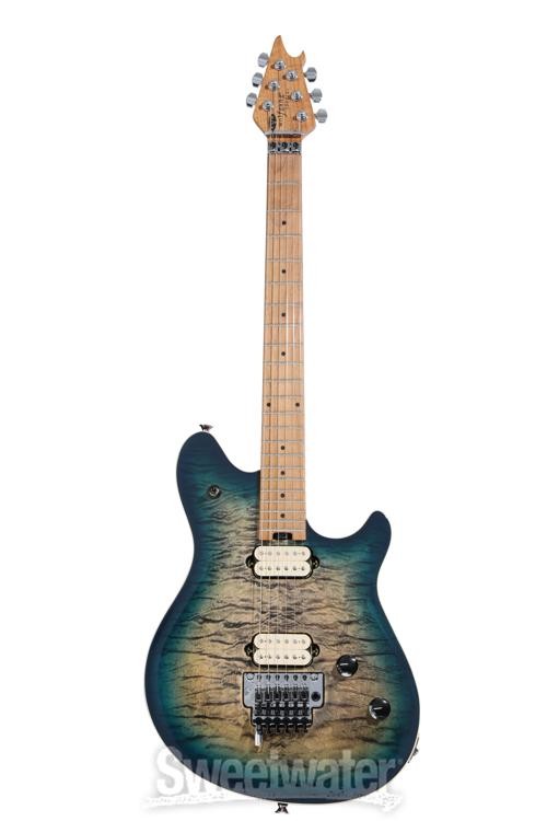 The Spirit of Van Halen Lives on Edward Van Halen’s contributions to the electric guitar are undeniable, and the EVH Wolfgang Special QM Electric Guitar delivers the massive sound and road-tested durability befitting of its legendary namesake. EVH humbuckers in the bridge and neck unleash a blistering yet clear sound, with upgraded volume and tone pots producing smoother swells and clearer tone. The basswood body topped with quilted maple and quartersawn baked maple neck combine for excellent sustain and durability, with a silky baked maple fingerboard ideal for finger-twisting runs and searing leads. Designed to his exact specifications and intentionally positioned against the body, the dive-bomb-only D-Tuna-equipped Floyd Rose lets you mimic Eddie’s signature trem work with ease, along with giving you instant access to Drop D tuning. The EVH Wolfgang Special QM is on fire — pick one up and unleash your creativity while channeling the spirit of a Sweetwater is an Authorized EVH Dealer Genuine New Item Sweetwater's 2-year warranty and 55 point inspection EVH Wolfgang Special QM Electric Guitar - Indigo Burst Solidbody Electric Guitar with Maple Top, Basswood Body, Maple Neck, Maple Fingerboard, Floyd Rose Tremolo, and 2 Humbucking Pickups - Indigo Burst The Spirit of Van Halen Lives on Edward Van Halen’s contributions to the electric guitar are undeniable, and the EVH Wolfgang Special QM Electric Guitar delivers the massive sound and road-tested durability befitting of its legendary namesake. EVH humbuckers in the bridge and neck unleash a blistering yet clear sound, with upgraded volume and tone pots producing smoother swells and clearer tone. The basswood body topped with quilted maple and quartersawn baked maple neck combine for excellent sustain and durability, with a silky baked maple fingerboard ideal for finger-twisting runs and searing leads. Designed to his exact specifications and intentionally positioned against the body, the dive-bomb-only D-Tuna-equipped Floyd Rose lets you mimic Eddie’s signature trem work with ease, along with giving you instant access to Drop D tuning. The EVH Wolfgang Special QM is on fire — pick one up and unleash your creativity while channeling the spirit of a true rock icon. World-class electronics worthy of a guitar legend Run through the wringer and approved by the man himself, EVH humbuckers are a standard in all Wolfgang Special QM guitars. Alnico 2 humbuckers in the bridge and neck go from singing highs to screaming leads with ease, courtesy of a 3-way toggle. Achieving that perfect Van Halen tone requires more than just high-quality pickups, and the Wolfgang Special QM is outfitted with several top-of-the-line components to round out its authentic EVH-inspired sound. Volume swells are smoother than ever with the 500K EVH Bourns low-friction pot, and a 250K Bourns high-friction pot on the tone knob prevents unwanted tone shifts. Top-quality construction made for heavy use To deliver his virtuosic performances on arena stages the world over, Eddie Van Halen demanded a lot from his instruments. This expectation for high quality is built directly into the Wolfgang Special QM series, which is crafted with resonant tonewoods and additional reinforcement for superior playability and rock-solid durability. Sweetwater guitarists love the Wolfgang Special QM’s comfortable, lightweight basswood body and striking quilt maple top, offering a well-balanced tone and extra beefiness in the midrange. If you’re in the market for incredible resonance and sustain, the Wolfgang Special QM’s quartersawn baked maple neck more than delivers, with graphite reinforcement adding additional stability. With its smooth feel and player-friendly comfort, the baked maple fingerboard is primed for a sonic eruption across all 22 jumbo frets. Bend your tone to oblivion with a Floyd Rose locking trem It’s nearly impossible to play any of EVH’s legendary solos without the use of a dependable, heavy-duty tremolo. Appropriately, the Wolfgang Special QM comes stock with a tried-and-true Floyd Rose locking trem — perfect for dive-bombs, squeals, and bends all while keeping your strings in tune. The addition of an EVH D-Tuna allows you to tune down to Drop D and back with the simple flick of a finger, adding even more versatility to this hard-rocking machine. EVH Wolfgang Special QM Electric Guitar Features: Designed and approved by Eddie Van Halen himself Alnico 2 humbuckers produce searing Van Halen tone Lightweight basswood body and quilt maple top adds sustain and resonance Graphite-reinforced quartersawn baked maple neck for increased durability Fast-playing baked maple fingerboard Upgraded volume and tone pots EVH-branded Floyd Rose tremolo allows for twisting, bending, and dive-bombing EVH D-Tuna for instant Drop D tuning Specification Detail Number of Strings 6 Left-/Right-handed Right-handed Body Type Solidbody Body Shape Wolfgang Special Body Material Basswood Top Material Quilted Maple Color Indigo Burst Body Finish Gloss Neck Material Maple Neck Shape Wolfgang Backshape Neck Joint Bolt-on Radius 12"-16" Compound Fingerboard Material Caramelized Maple Fingerboard Inlay Pearloid Neo-classic Thumbnail Number of Frets 22, Jumbo Scale Length 25.5" Nut Width 1.625" Nut Material Floyd Rose 1000 Series R2 Locking Bridge/Tailpiece EVH Floyd Rose 1000 Series Double Locking Tremolo Tuners EVH Neck Pickup EVH High Output AL2 Humbucker Bridge Pickup EVH High Output AL2 Humbucker Controls 1 x volume, 1 x tone Strings EVH Nickel Plated Steel, .009-.042 Case/Gig Bag Sold Separately RETURN INFORMATION We want you to be completely happy with your purchase from Sweetwater. If you are not satisfied with your product, you may return it for a refund of the purchase price within 30 days. If your purchase was eligible for Free Shipping, the shipping cost will be deducted from your credit or refund. Returns must be in the complete and original packaging with all accessories a