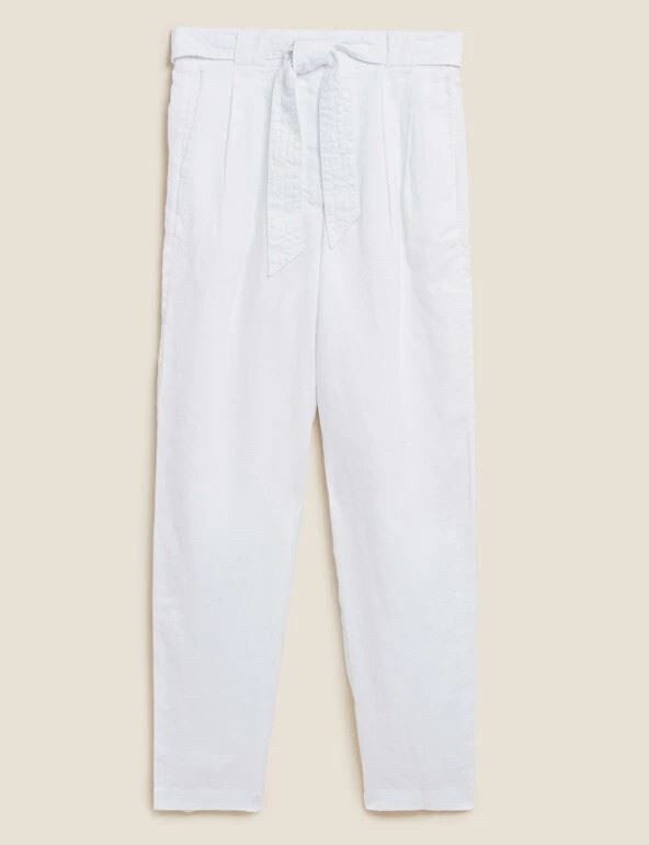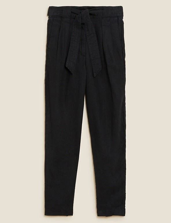 M*S TAPERED TROUSER AVAILABLE IN BLACK, WHITE AND NATURAL Tapered leg Zip & Button fastening Pure linen High Rise Belted Added stretch Elasticated waist Cosy, comfort & warm Main: 100% LINEN Machine Washable at 40C Delicate INSPIRATION: Dress casual with a t-shirt , sweatshirt or hoodie. Dress smart with a shirt/blouse and loafers/pumps. Dress up by pairing nice top/jacket, some jewellery and a nice pair of heels. Let us know how you dress it! Please Note: Actual colours may vary. This is due to the fact that every computer monitor has a different capability to display colours and that everyone sees these colours differently. Size Guide Approx Short- 27" Regular- 28" Long- 29" Returns We are more than happy to accept returns. The item must be returned in it's original (new & resell-able) condition with all tags intact. For exchanges, the buyer must cover postage costs unless the item is faulty or damaged. If you would like to return your item please follow the following steps: (1) Contact us via eBay messages to let us know you would like to return your item (2) Make a note inside of the package with your (i) Username (ii) Refund or Exchange. (3) Please make sure the item is sent back via a tracked service as we cannot refund/exchange for items lost in transit. (4) As soon as we receive the item back we will process it within 48 hours. Refunds will be refunded once the return has been processed. Exchanges will be shipped within 2 working days after the return has been processed. Feedback If you are happy with our product and services ,a good review / Feedback would really help grow this business . If you have any issues instead of leaving a negative feedback we would really appreciate if you could let us know so we can rectify the issue straight away. In the meantime you may wish to look at our other products. Thank you for shopping