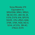 ## Upcoming Time Away Announcement ## The store will be temporarily unavailable between 1/4/2025-2/8/2025. Please make any orders before this period. ============== 5 SONY 379 [EXP 2030] Watch Coin Button Cell Battery SR521SW Ships from CA. Brand New 5 Count Equivalent to : LR521, LR63, SR521, SR521S, SR521SW, SR63, 379, SG0, AG0 Sony SR521SW Maxell Panasonic Seizaiken SR521SW Energizer Rayovac Renata 379 Varta V379 Berec B-379L Bulova 618 Citizen 280-59 Omega 9938 Orient 080-D29 Seiko SB-AC Timex JA Equivalent to SR521SW, SR63, SR521, SB-AC/DC, 280-59, JA, V379, D379, 618, GP379, S521E, 379, LR521, AG0, 379A, 379X, AG0, AG-0, 521A, UC379, SB-AC, 379LD, E379 *** *** NOTE to buyers using forwarding service address *** Unfortunately, we do not ship to a forwarding service address due to frequent delays and lost packages unless Ground Advantage option used. Thank you for your understanding.