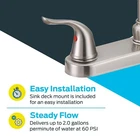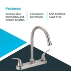 Ships out the same-next business day. Brand new. Never used. Not refurbished. Please see all pictures. Item from a climate controlled, smoke-free, pet-free building. EZ-FLO Kitchen Faucet, High Arc Kitchen Sink Faucet with 2 Handles, Brushed Nickel, 10199 Brand EZ-FLO Recommended Uses For Product Sink, Kitchen Mounting Type Deck Mount Finish Type Brushed Material HAWA Color Brushed Nickel Number of Handles 2 Included Components kitchen faucet Hole Count 3 Special Feature Lead Free KITCHEN FAUCET: High-arc spout allows for more workspace while adding a captivating visual interest to its outline, and the 2 handles set the water temperature EFFICIENT: Kitchen faucets deliver 2 gallons per minute, and are equipped with best-in-industry ceramic disc cartridge for a lifetime of drip-free use, and feature Neoperl aerators for a constant fresh stream of water EASY INSTALLATION: Two handle faucet features an included sink deck mount for convenient installation LEAD FREE: Sleek modern kitchen faucet complies with lead free guidelines for safe water drinking, and certified by NSF SPECS: Kitchen faucet delivers 2 gallon a minute (GPM) at 60 PSI 0473