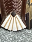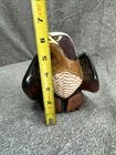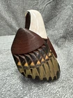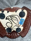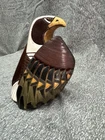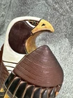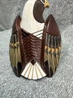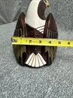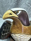 Beautiful eagle figure hand made and hand painted. Eagle is in near perfect condition. Only flaw we see is a tiny chip on edge of foot, as shown in photos. Please see all photos for measurements and conditions