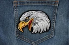 Eagle Head Left facing Iron on Biker Patch - 4.15x3 inch - P6816