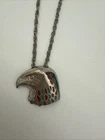 This beautiful necklace features an eagle head pendant that is sure to catch anyone's eye. The pendant is crafted with intricate details and hangs from an 8.5" long chain that is perfect for layering or wearing on its own. The necklace is a great addition to any jewelry collection and is perfect for any occasion. Whether you're dressing up for a night out or adding a touch of elegance to your everyday look, this necklace is sure to impress.