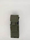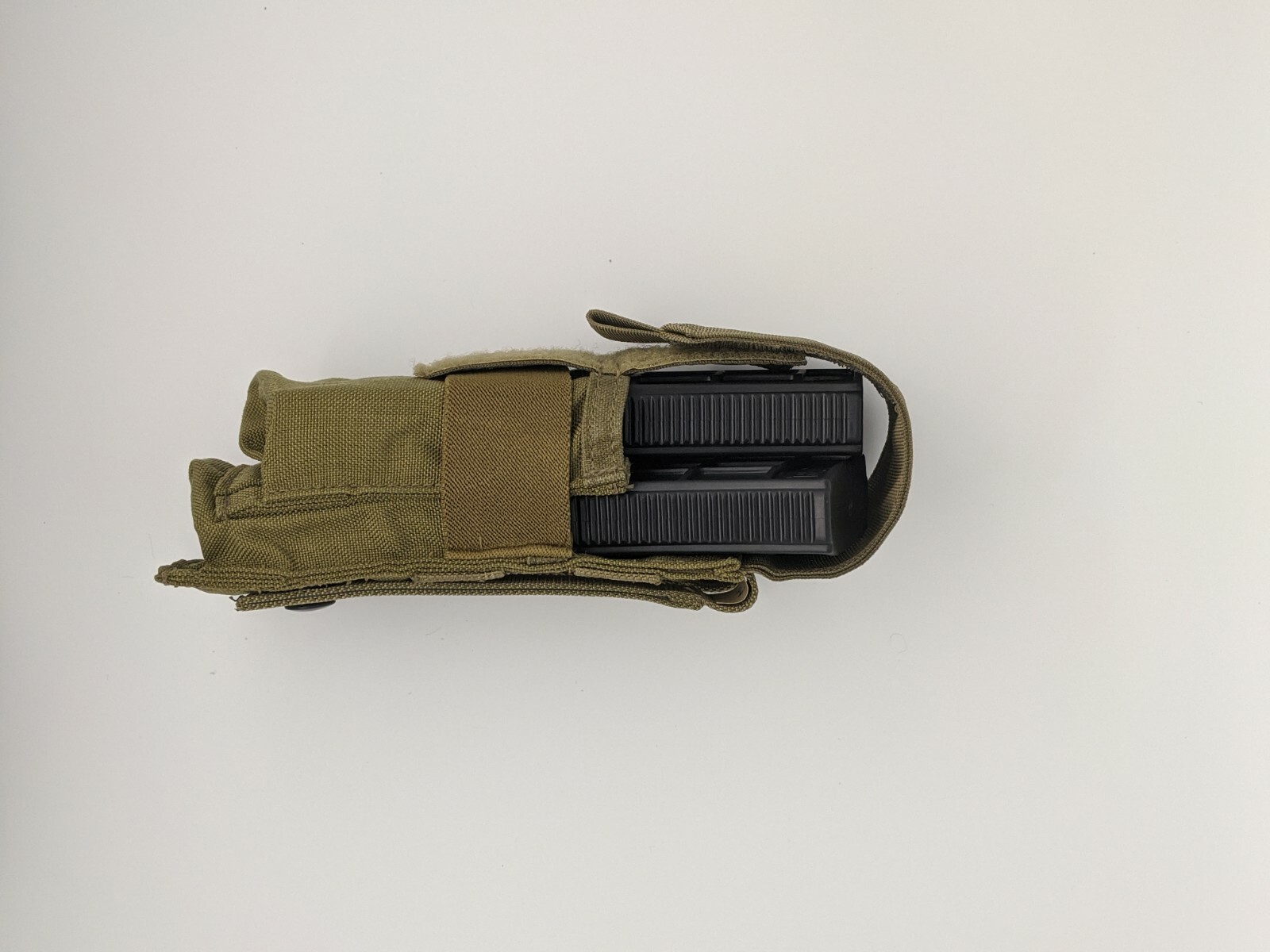 Up for sale are original, authentic Eagle Industries Pouches. New and unissued. Ballistic nylon construction, these will hold up to 2 (Two) magazines. Elastic side bands keep tension on magazine bodies to prevent rattle or unintentional loss of magazine. Also features Velcro flap for security during air or maritime operations. Back of pouch has MOLLE straps with metal snaps. These were made under contract before Eagle was bought out by ATK, so the design and sew quality are second to none. These are a steal, compared to other double magazine pouches costing up to $100 each! Available in Khaki, Ranger Green and Black. Made in USA.