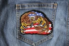 4.3x3.5 inch. Embroidered Patch with Plastic Iron on Backing. Patch can be sewn on to Leather Vests, Jackets or Chaps. Patch can also be ironed on to Denim Shirts, Hats or Bags. Iron on Patch at 280 Degrees Fahrenheit for 30 Seconds. Ironing on Application is a semi permanent way of attaching patches. Sew on the Patch for Permanent application. Do not iron on patches to Leather or Nylon Materials.