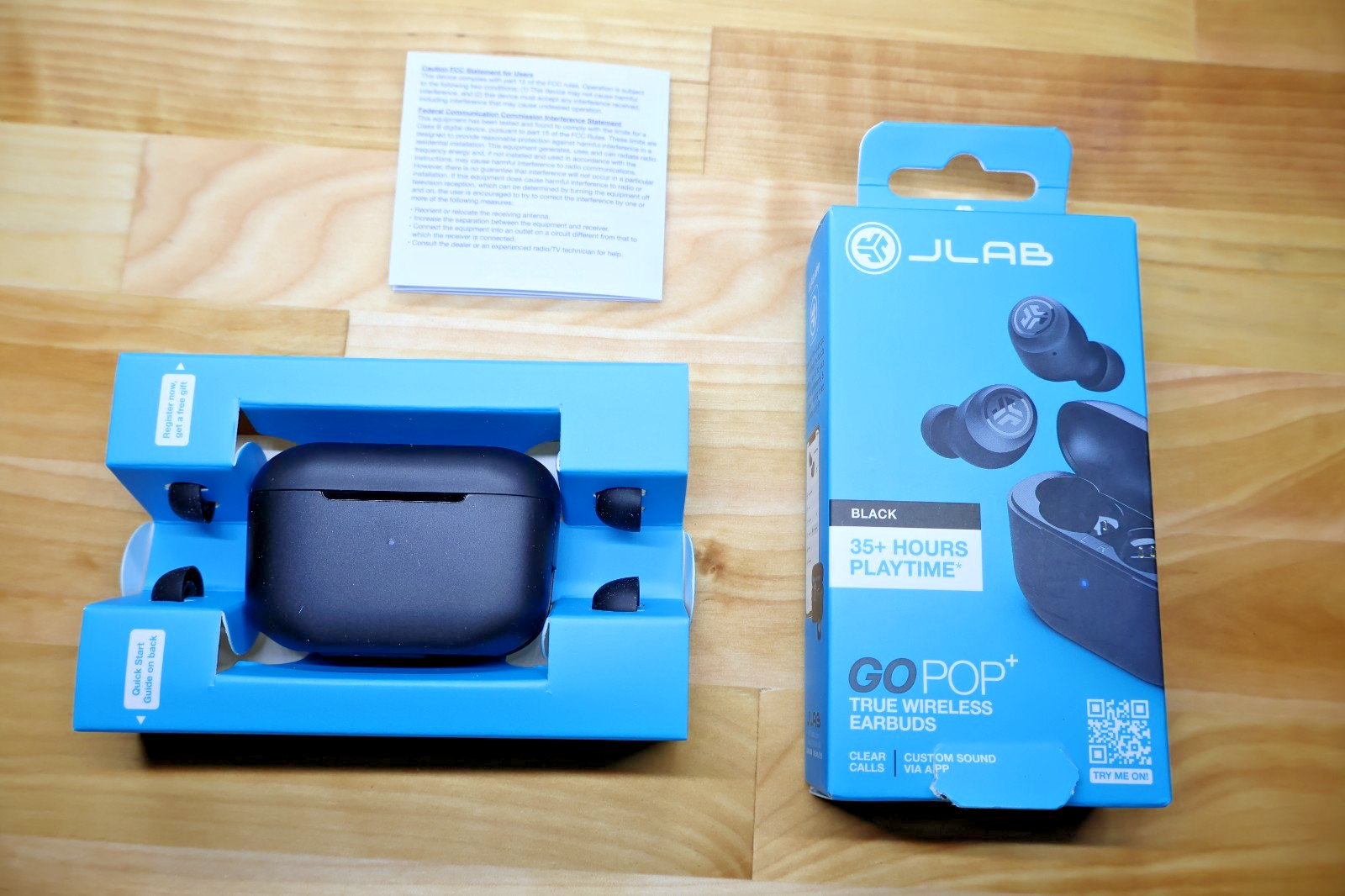 Brand new Jlab Gopop true wireless earbuds.• 35+ hours Bluetooth playtime • 9+ hours in each earbud • Dual connect either earbud • IPX4 sweat and splashproof • Clear Calls • Google Fast Pair & Find My Device • Charging case with integrated USB-C charging cable (26+ hours) • 3 sets of gel eartips PACKAGE INCLUDES• GO Air POP True Wireless Earbuds • Charging Case w/ Integrated USB Charging Cable • 3 Sets Gel Tips: Small, Medium, Large SPECIFICATIONSAUDIO • Speaker: Φ6mm Dynamic driver • Output: 103+/-3dB • Microphone: MEMS -42dB+/-3dB • Frequency Response: 20Hz-20kHz • Impedance: 16Ω BATTERY • Battery Life: 9+ hours in each earbud • Total Playtime: 35+ hours total • Standby: 60+ hours • Input Power: 40mA • Earbud Battery: 43mAh lithium polymer • Earbud Charge Time: 2.2 hours (in case) • Charging Case Battery: 350mAh lithium polymer rechargeable • Case Charge Time: 2 Hours • Charge Plug: USB-C • Fast Charge: 1 hour of playtime in 10 minutes BLUETOOTH • Version: Bluetooth 5.1 • Range: 30+ ft. GENERAL • Weight: 35.4g (earbuds + case), 3.7g per earbud, 27.5g charging case • IP Rating: IPX4 (earbuds only) Thank you for your interest, please reach out with any questions!