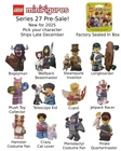 27 Each Lego Series 27 Minifigure 71048 is brand new factory sealed in its cardboard box complete with accessories, display plate, and collector's leaflet. Early pre-orders are scheduled to ship the last week of December. Reserve the complete set here . Orders are securely packaged in boxes. Shipping is combined at checkout and free for orders $25 or more. Returns are free for 30 days. Questions will be responded to within one day. Product Details: Kick off 2025 in style with the Lego Series 27 Minifigure Series. These high detailed and ever more creative characters include newcomers like the Plush Toy Collector and Steampunk Inventor. This set also highlights the very poplar and highly collectible monster Bogeyman and Wolfpack Beastmaster. Don't forget about the small in stature but big-hearted Cupid, Hamster Costume Fan, and Telescope Kid - along with many others! Bogeyman with "Booo" book of scares Crazy Cat Lover with long haired white cat, ball of pink yarn, and cat sweater Cupid with heart and arrow Hamster Costume Fan with gloves and sparring helmet Jetpack Racer with jetpack and helmet Longboarder with wooden longboard Pirate Quartermaster with white talking parrot and sword Plush Toy Collector with green and blue round fluffy plush toys Pterodactyl Costume Fan with wings Steampunk Inventor with steam powered mechanical hook arm Telescope Kid with telescope and stand Wolfpack Beastmaster with grey wolf, long sword, shield, and black cape Lego's collectible minifigures are a fast growing hobby that allows fans of all ages to collect, build, play, gift, and invest! Minifigures specializes in authentic factory sealed Lego cmf's, poly bags, and box sets. Browse over 850 minifigures from all 55 official cmf series: Series 1 | 2 | 3 | 4 | 5 | 6 | 7 | 8 | 9 | 10 | 11 | 12 | 13 | 14 | 15 | 16 | 17 | 18 | 19 | 20 | 21 | 22 | 23 | 24 | 25 | 26 | 27 D&D | Disney | Super Mario | Marvel | DC Comics | Looney Tunes | Muppets | Lego Movie | Batman | Simpsons | Harry Potter | Ninjago | Bandmates | DFB | Team GB | Unikitty