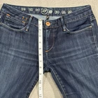 Earnest Sewn Harlan premium denim jeans in a dark rinse wash. Made in the USA with quality construction and signature Earnest Sewn back pocket stitching. Classic 5-pocket design with contrast stitching and slim straight silhouette. Premium designer denim from the Y2K era. Condition: Good preowned condition with light natural fading from wear. No major flaws observed. Measurements: Waist 14.5 in, Inseam 31 in, Rise 8 in, Leg Opening 6 in Details: Brand: Earnest Sewn Model: Harlan Wash: VE Rinse Made in USA Material: 74% Cotton / 26% Polyester Style: Slim Straight