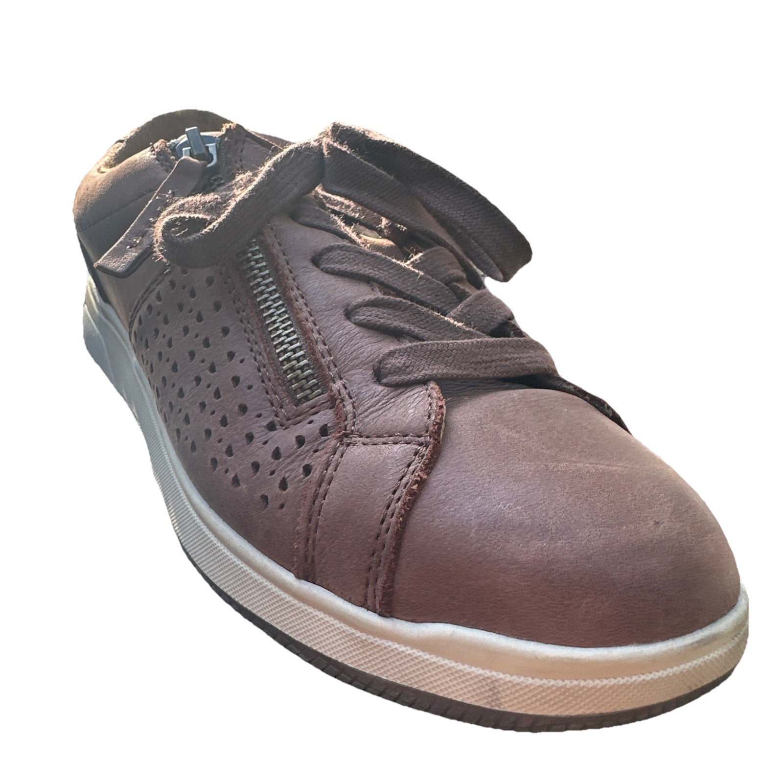 The Earth Netta Round toe Lace up Sneakers for women in Dark Natural Size 8 are a stylish and comfortable athletic shoe option. With a lace-up closure and a round toe design, these sneakers offer a secure fit and a trendy look. The brown color and nature-themed style make them a versatile choice for everyday wear, while the Earth brand ensures quality and durability. Perfect for women who appreciate both fashion and functionality in their footwear. PREOWNED: see photos for wear. Minor scuffs