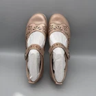 Earth Shoes Womens Size 6.5 Nude Mary Jane Leather Flats Comfort Cutout Appear gently worn with minimal wear on outsoles; uppers and interiors clean with no noticeable scuffs. Strap closures function properly. Brand: Earth Style: Womens Mary Jane flats with floral laser-cut detailing and adjustable strap. Color: Nude / light sand brown with white rubber outsoles. Size on tag: 6.5M (womens medium width). Style/Model name as printed on shoe: Alder Adel, color Nude/Nude. Materials (per tag): Leather upper, leather sock lining, balance man-made; made in China. Details: Round toe, cushioned insole for comfort, hook-and-loop strap with decorative metal button, low-profile flexible sole, casual everyday design. 0581 Measurements: - Previous washings may change the sizing written on the tag. - Please refer to the photos above for all measurements. - Please compare our measurements to that of one of your favorite garments. - Please note, item measurements are approximate . All items are bagged and sealed after being photographed, then stored in a smoke free environment to ensure the item is exactly the same as when photographed. All items have been washed per eBay standards & policies. I carefully package and ship daily. Feel free to contact me with any questions.