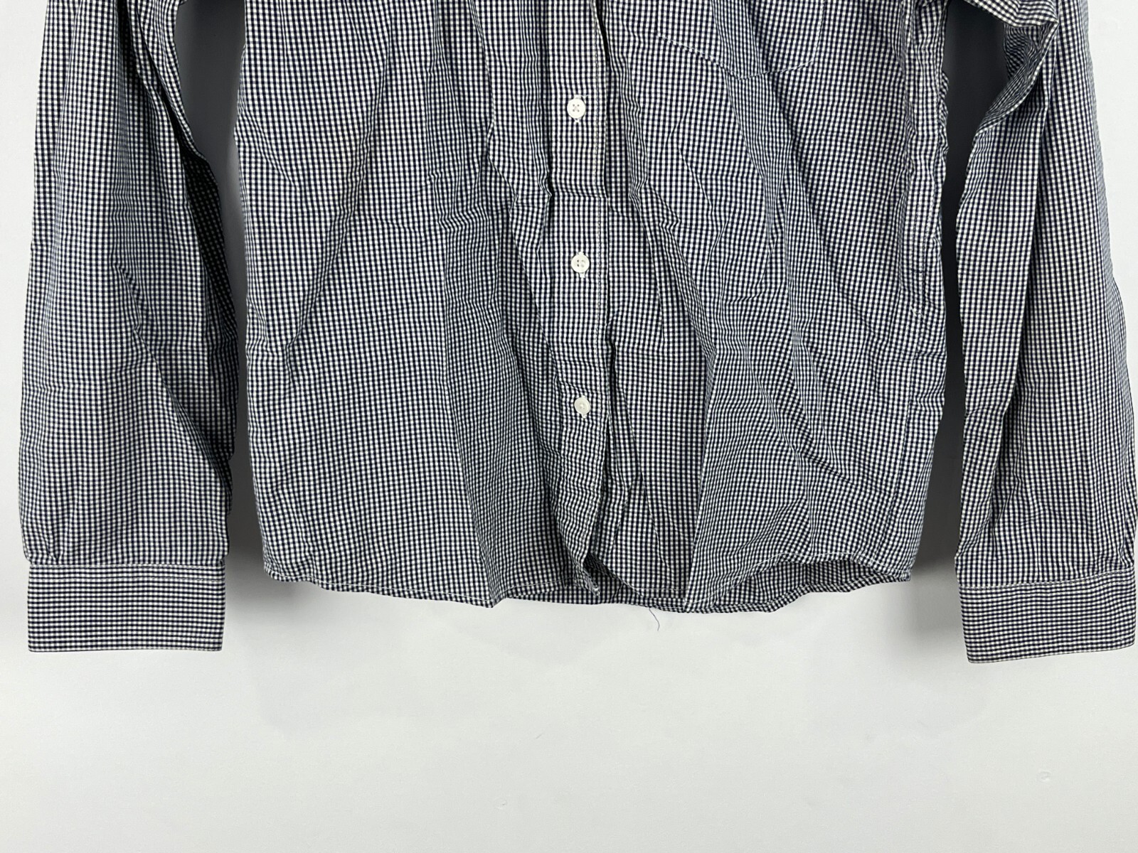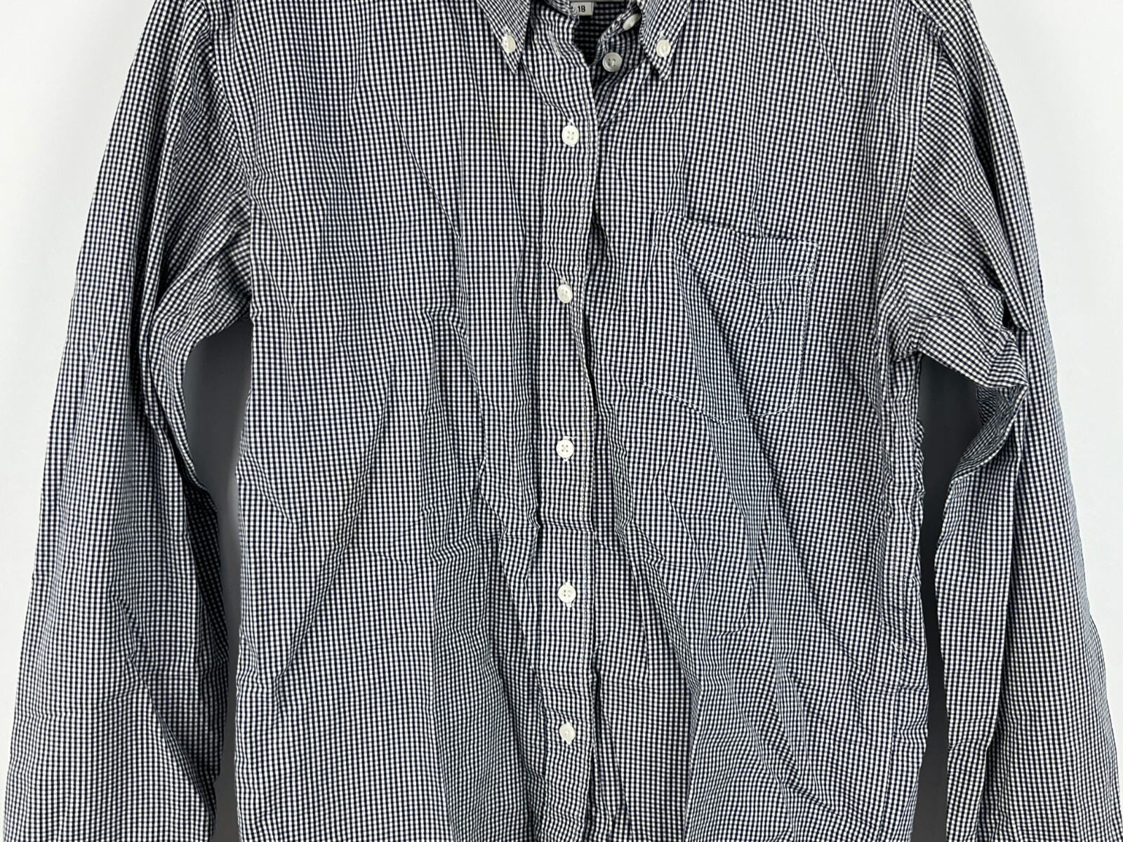 Dress up your wardrobe with the East Coast Top Blouse, a versatile and stylish addition that's perfect for any casual or professional setting. In a classic gray check pattern, this blouse features a smart collared neckline and convenient pockets, making it an ideal choice for those who appreciate both form and function. The lightweight cotton material ensures comfort and breathability, while the long casual sleeves provide a relaxed fit for plus-size figures in a size 18. Designed for ease, this blouse boasts a button-down closure and is machine washable, ensuring that maintenance is as simple as its design is elegant. Whether you're headed to the office, attending a cocktail party, or embarking on travel adventures, this blouse is a go-to piece for fall, spring, and summer seasons. It's a staple that promises to serve your style needs with a timeless and chic appeal. Dimensions Shoulder to shoulder 16in Pit to pit 19in Shoulder to bottom 21in
