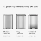 brand 13 Gallon (49.2L) extra strong kitchen trash bags are thick and durable to resist ripping and tearing. Built of multiple layers to provide strength and leakproof peace of mind while in use and when taking out the trash. The drawstring design is easy to lift for removal, tie, and carry. These trash bags come on an easy-dispense roll of 60 bags, so there's no fumbling around when you need a replacement bag. These extra strong kitchen trash bags are designed for brand trash cans, but can be used for any standard kitchen-sized trash can with a capacity between 10G - 15.9G (40L-60L). "F" type bags. Ideal for models: EK9382MT-45L (Cozy 45L), EK9138MT-45L (EcoCasa II 45L), EK9361MT-50L (Madison 50L), EK9262MT-45L (Horizon 45L), EK99278TBMT-50L (Mirage-T), EK9277TBMT-50L (Phantom-T), EK9260BMT-45L (Mirage-X 45L), EK9260MT-47L (Mirage-X 47L), EK9261BMT-45L (Phantom-X 45L), EK9261MT-47L (Phantom-X 47L), EK9290MT-50L (NeoCube 50L). Also use these handy, high-quality bags around your home for storage and cleaning purpose. Not recommended for food storage. To avoid danger of suffocation, keep this and all plastic bags away from babies and children. Do not use this bag in cribs, carriages, or playpens. This bag it not a toy. Ultra Strong Material - Our heavy duty garbage bags are made with 1 mil thickness making them 10% stronger than the leading national trash bags. The Perfect Fit - Standard 13 Gallon kitchen trash bag sized for seamless use. Leak-Resistant - Built of multiple layers to provide strength and leakproof peace of mind while in use and when taking out the trash. Easy Handling- The drawstring design allows for effortless lifting, tying, and carrying. Convenient Pack - These trash bags come on an easy-dispense roll of 60 bags, so there's no fumbling around when you need a replacement bag.