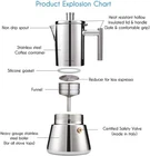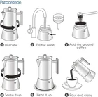 Easyworkz Diego Stovetop Espresso Maker Stainless Steel Italian Coffee Machine M Easyworkz has created this high grade stovetop espresso maker with modern manufacturing technology and crafted to meet the top standards in this industry. Featuring a heavy gauge 18/8 stainless steel construction with high mirror polishing,induction base and fit for all stove tops. It is our Diego Coffeemaker! Fresh espresso,classically brewed in a nice and elegant espresso maker. Our Diego espresso maker has an elegant classy design and will be your lifetime moka pot. Enjoy your coffee and have fun everyday with Our Diego coffeemaker. Dishwasher safe - Easy to brew and clean stovetop espresso moka coffee pot Tip 1 **For safety, there will be residual water in the boiler to prevent over burning.** If you wish to make less espresso, fit the boiler half way to the safety valve with water and insert the reducer into the funnel. Add your ground coffee on the top of the reducer. Allow the moka pot to cool down before open it to wash. For the best results, always wash your espresso maker by hand. For the best tasting, brew with Fine grinding coffee and filtered water. Tip 2 Shipping Fast Shipping Worldwide Returns We accept returns 30 days from the package received. Payments All payments are accepted via PayPal. Thank you for shopping