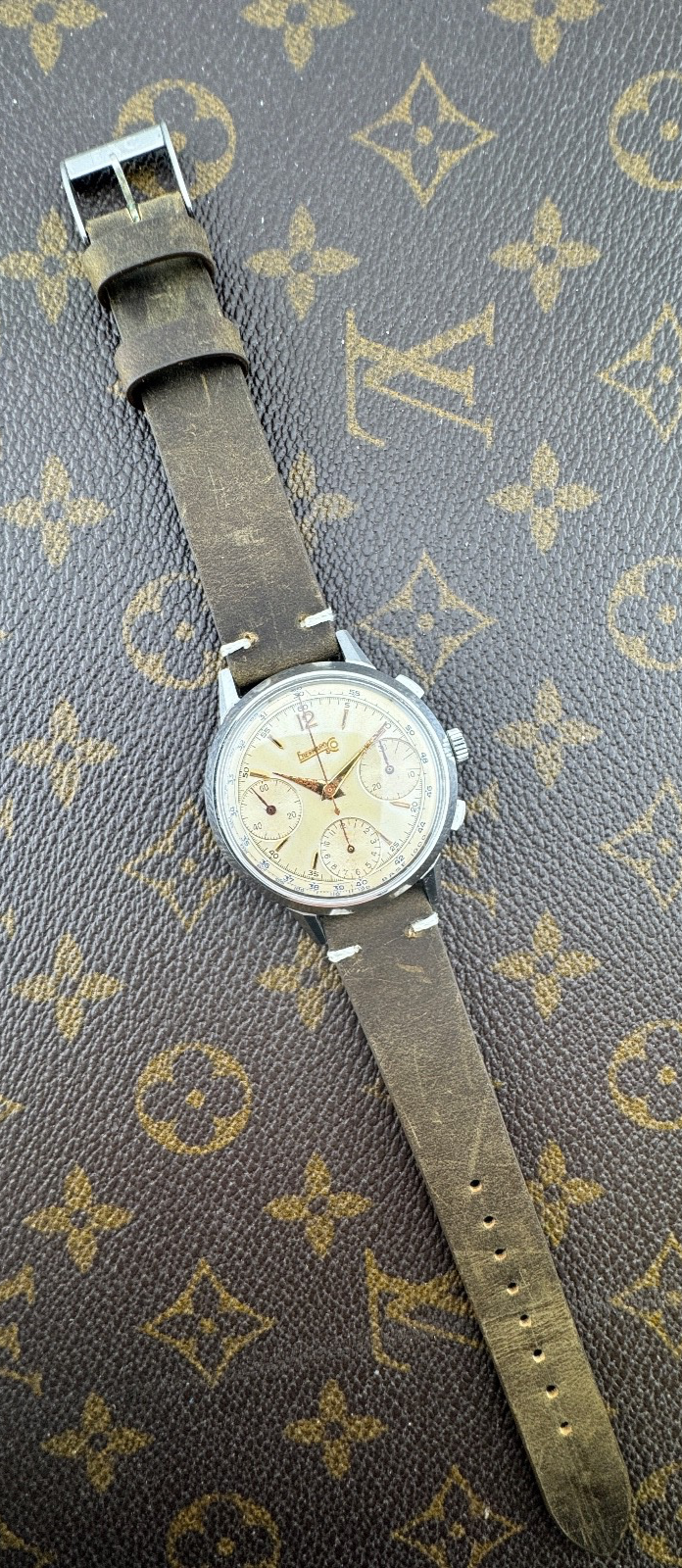 PROPONIAMO; -Marca: EBERHARD -Cassa: ACCIAIO INOX DA 39,5, FONDELLO A PRESSIONE LOGATO -Movimento :ORIGINALE EBERHARD CALIBRO 16000, FUNZIONANTE IN TUTTE LE SUE PARTI -Vetro:PLEXY -Corona:ORIGINALE -Ghiera:NO -Tasti: ORIGINALI ACCIAIO -Quadrante: ORIGINALE CON LEGGERA PATINA DEL TEMPO -Lancette: ORIGINALI -Cinturino/Bracciale: VERDE STILE CINTAGE DA 18MM NUOVO GENERICO -Scatola e documenti: NOSTRA POCHETTE IN VELLUTO COMPRESA -Condizioni : OTTIME -Revisionato:SI -Uomo/donna/unisex: UOMO PER QUALSIASI DUBBIO CONTATTATEMI ,RISPONDEREMO IL PRIMA POSSIBILE !
