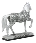 • This Silver Colored Filigree Design Horse Statue is made of the highest quality resin, hand painted and polished individually. • This Silver Colored Filigree Design Horse Statue measures 7.25" tall, 7.75" wide and 2.5" deep approximately. • This is a beautiful sculpture of a sauntering horse, intricately sculpted and carved on resin medium with metallic filigree design paint and polish. The body of the horse showcases some unique filigree floral vines artwork that continues seamless into part of the base too. It makes a wonderful decor for your desks, shelves or what have you! Gift it away to any loved ones too! • This is an Ebros Gift exclusive collection. Ebros Equestrian Filigree Graceful Sauntering Silver Horse Statue 7.75" Long Video will open in a new window Using the mobile app? Copy this link into your browser: