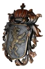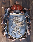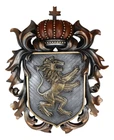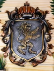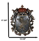• This Heraldic Royal Lion Shield Wall Decor is approximately 17.5" high, 14" wide and 1.75" thick. It weighs about 4.5 pounds. • This Heraldic Royal Lion Shield Wall Decor is made of designer composite resin, hand painted and polished. Color Tone may vary slightly from pictures. • This royal blazon of arms features a ferocious lion-headed mythological beast in the center of the shield and a majestic crown of the royal family above it. Though coats of arms continue to evolve as dynasties merge, this classic, 17.5" high wall sculpture continues a rich heritage, cast in quality designer resin and painstakingly hand-painted in antique bronze and other royal colors. • Soda can and props placed next to the wall sculpture is not included with the listing. They are meant to provide size perspective of the item.