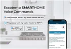 Powered by Frooition All Categories Eccotemp SH22-LP 6.8 GPM 140,000 BTU 120 Volt Residential Outdoor Liquid Propane Tankless Water Heater with Smart Button and Wi-Fi Connectivity Overview Item Description Heat your water smarter with the Eccotemp Smart Home 6.8 GPM Outdoor Liquid Propane Tankless Water Heater (SH22-LP). The technology-driven design guarantees comfort and ease, providing limitless hot water while conserving both space and energy. Leading the revolution in home comfort technology, this tankless water heater is the first all-in-one smart solution patented in the market. Say goodbye to the complex and costly integrations of traditional heaters, this model comes with a built-in smart system, streamlining your home's water heating functionality within a single device. Envision a home that anticipates your needs, where you can orchestrate your water heater's operation with just your voice. Thanks to its Wi-Fi connectivity, this heater can be paired with Amazon Alexa and Google Home to access smart voice commands, and the Eccotemp mobile app allows you to control and monitor your water heater from anywhere. Start your day with a hot shower by simply saying, "Alexa, turn on water heater". With the smart tankless water heater, you'll have a personal assistant ensuring your comfort. Harness the power of the Eccotemp mobile app to manage your water heater from any location. Personalize temperature settings, establish routines, set timers, and view in-depth consumption data, including costs right at your fingertips. This enables you to tailor your hot water usage to fit your lifestyle, maximizing energy efficiency and minimizing utility expenses. Furthermore, the Eccotemp app sends maintenance alerts directly to your phone, keeping you informed about your water heater's health, ensuring longevity and peak performance. Features: Flow rate of 0.5 - 6.8 GPM Available temperature settings range from 90 to 140°F (default setting of 110°F) Includes electric ignition CSA certified for installation in the US and Canada This heater provides on-demand hot showers for up to 3 bathrooms simultaneously Ideal for almost any standard-sized single-family home, townhome, condo, cabin, apartment, or light commercial use. Use the Eccotemp mobile app to track energy consumption, adjust temperatures, set schedules, or even detect product and network errors Versatile smart app settings that display your desired currency (USD/CAD), dual-mode Fahrenheit and Celsius temperature readings, and preferred gas measurement unit, offering a personalized understanding of your usage Seamlessly connect with Amazon Alexa or Google Home for voice command functions Smart Power Button feature turns your model on or off, detects error codes, connects to wireless networks, and enables sleep mode to prevent unnecessary energy use, all with a simple touch The SH22 Series can be complemented with the patented, one-of-a-kind EZ-Flush Descaling Kit to ensure your tankless water heater is running at maximum efficiency all year long Expertly constructed with rigorous engineering, this water heater is built to last while providing superior efficiency and unrivaled reliability, ensuring you will benefit from its service for years to come Unlock substantial savings with the Eco Mode feature, a smart solution that can help you reduce energy consumption by up to 25% Covered under 2 year parts, 30 day accessories, and 5 year heat exchanger manufacturer warranties Specifications: Width: 14" Height: 23" Depth: 7-1/4" Fuel Type: Liquid Propane Gas Connection: 3/4" Connection Size: 3/4" Water Pressure (Min): 25 psi Water Pressure (Max): 150 psi Temperature (Min): 90°F Temperature (Max): 140°F Voltage: 120V Amperage: 0.7A Eccotemp Systems, LLC is a manufacturer of energy efficient products located outside of Charleston, in Summerville, SC. Their goal is to educate consumers and trade professionals about energy savings and efficiency primarily in the form of heating water, including benefits, total investments, installation and more. Seeing tankless and heat pump technology was the predominant method of heating water in every other part of the world, Eccotemp searched out and engineered a solution for the US and Canadian markets. Until Eccotemp, the only tankless units on the market were larger, extremely expensive units. Recognizing that a whole house tankless unit could be engineered, manufactured and delivered to the end consumer for about the same net cost of a standard water heater, Eccotemp was born. Over the past years, Eccotemp has taken a realistic and practical approach to its technology - delivering a state of the art tankless unit at an affordable price point. Why Choose BuildInc? OUR PROMISE TO YOU About Us At Build, we promise to provide the best selection we can, most competitive pricing, and unmatched customer service. Our store has quality home improvement products from trusted manufacturers like Moen, American Standard, Delta, Kraus, Kichler, Progress Lighting, Schlage, Kwikset, Baldwin, Broan, NuTone, Air King, and Rev-A-Shelf. With over 200,000 home improvement products for you to choose from, we have just what you need to get your project done. Fast & Free Shipping We promise to make it our priority to get you your items as fast as we can. We ship from 440 warehouses around the country, ensuring that your product will get to you as soon as possible. We know you're eager to get your hands on your new purchase, we would be too. As a bonus, most items ship for free. Returns We are happy to accept returns of unused or defective items for a refund within 30 days from the date of delivery. For returns outside 30 days, please contact our Customer Service team to go over our options. For full details, please view the Shipping and Payments tab above. To initiate a return simply go to the eBay Returns Portal and submit a return request. We ask that all items be returned with all original components via a traceable method. Once