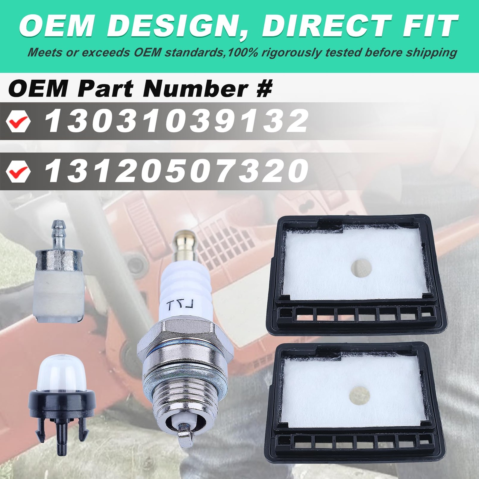 is committed to providing with the each customer high quality products and friendly customer service. To ensure the compatibility for the item, please compare your original with our pictures,and double check for the details. Compatible with Chainsaw Parts: for Echo CS-300 CS301 CS305 CS306 CS340 CS341 CS345 CS346 CS3000 CS3400 CS3450 Replace Chainsaw Air Filter OEM Part for 13031039132 , Fuel Filter 13120507320, Replaces 90076 90149 90149Y Compatible with: CS-3000 (Type 1E) (After S/N 001001) Chainsaw CS-300 (03001001 - 03999999) Chainsaw CS-300 (04001001 - 04999999) Chainsaw CS-3000 (Type 1) (After S/N 001001) Chainsaw CS-301 (02001001 - 02999999) Chainsaw CS-301 (04001001 - 04999999) Chainsaw CS-305 (03001001 - 03999999) Chainsaw CS-305 (04001001 - 04999999) Chainsaw CS-306 (02001001 - 02999999) Chainsaw CS-306 (04001001 - 04999999) Chainsaw CS-306 (C07511001001 - C07511999999) Chainsaw CS-306 (C08411001001 - C08411999999) Chainsaw CS-306 (C09413001001 - C09413999999) Chainsaw CS-340 (03001001 - 03999999) Chainsaw CS-341 (02001001 - 02999999) Chainsaw CS-340 (04001001 - 04999999) Chainsaw CS-3400 (Type 1) Chainsaw CS-341 (04001001 - 04999999) Chainsaw CS-3400 (Type 1E) Chainsaw CS-341 (C07611001001 - C07611999999) Chainsaw CS-341 (C08511001001 - C08511999999) Chainsaw CS-341 (C09513001001 - C09513999999) Chainsaw CS-345 (03001001 - 03999999) Chainsaw CS-345 (04001001 - 04999999) Chainsaw CS-3450 (Type 1) (001001 - 025666) Chainsaw CS-3450 (Type 1) (After S/N 025667) Chainsaw CS-3450 (Type 1E) (After S/N 001001) Chainsaw CS-346 (02001001-02006473) Chainsaw CS-346 (02006474 - 02999999) Chainsaw CS-346 (04001001 - 04999999) Chainsaw You Will Receive: 2 x ➤ Compatible with Chainsaw Parts:for Echo CS-300 CS301 CS305 CS306 CS340 CS341 CS345 CS346 CS3000 CS3400 CS3450 ➤ Replace Chainsaw Air Filter OEM Part for 13031039132 , Fuel Filter 13120507320, Replaces 90076 90149 90149Y ➤ You Will Receive : 2 x Air Filter,1 x spark plug, 1 x primer bulb, 1 x fuel filter for Echo Chainsaw Replace ➤ High quality and Long lasting Service Life replacement parts accessories, please compare your original model carefully with our pictures and product details to avoid the model mismatch problem. More Questions please feel free to contact us ➤ Quality service: We offer other parts & accessories matching advises, welcome to contact before you purchase.