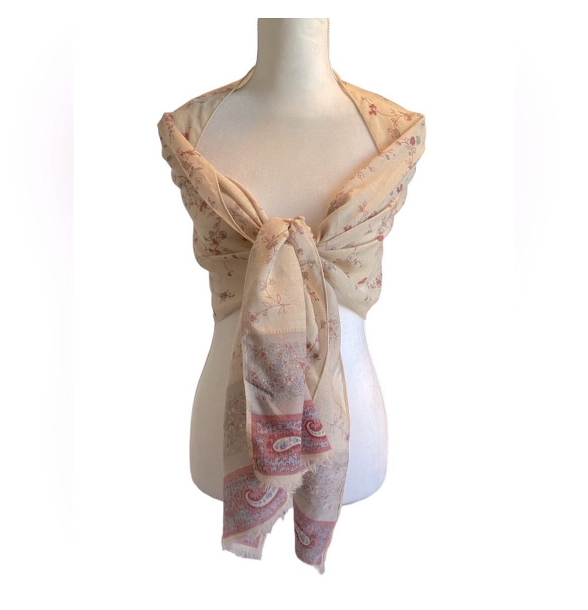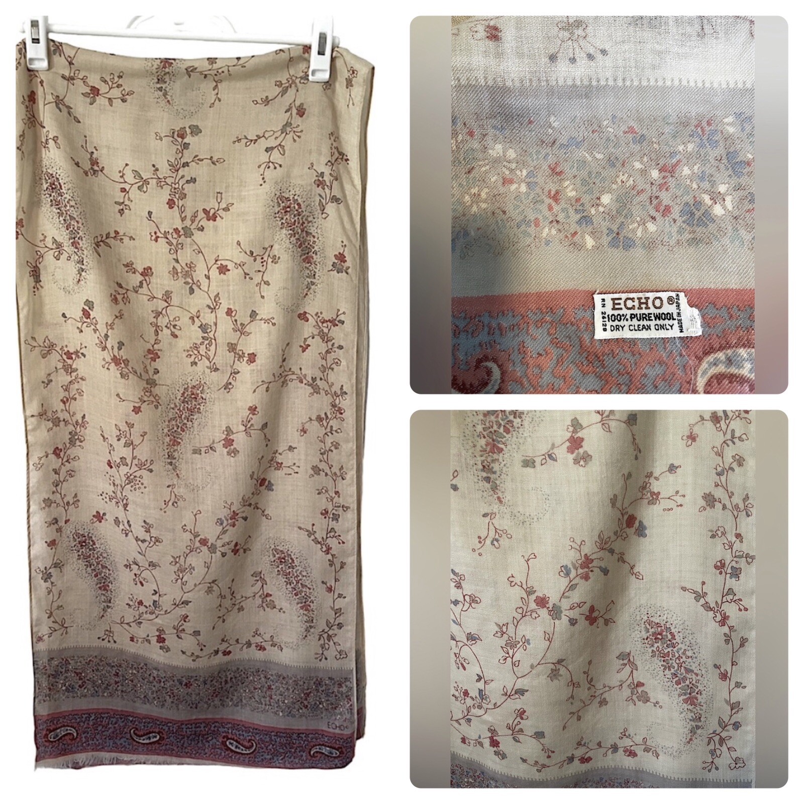 Echo Vintage Wool Floral & Paisley Print Scarf Good condition 100% Wool Made in Japan RN 26128