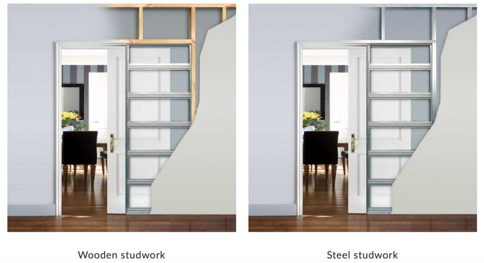Eclisse EKQ2880 28x80 Pocket Door System Steel Frame Kit in Silver