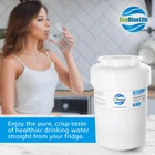Unlock the full potential of your drinking water with our cutting-edge filter replacement! Engineered to integrate flawlessly with a wide array of models, this filter offers a simple, no-tool installation process that transforms the way you drink water. By enhancing both taste and quality, our filter effectively eliminates chlorine flavors and odors, along with a broad spectrum of common contaminants found in tap water. Crafted using activated carbon media, our filter not only surpasses conventional options in performance but also promotes a more responsible approach to water filtration. It's meticulously designed to fit snugly, measuring 3.6 inches in diameter, 5.6 inches in width, and 3.5 inches in height, providing up to 300 gallons of crystal-clear, delicious drinking water. Keep your water pure and your refrigerator running smoothly by replacing your filter every six months. Make the switch—because your water should be as fresh as your day is long! ADVANCED FILTRATION PERFORMANCE: EcoBlueLife refrigerator water filter replacement reduces chlorine, odors, and impurities, delivering fresh, clean water directly from your fridge. Enjoy pure, great-tasting water with this high-quality fridge filter. CERTIFIED QUALITY ASSURANCE: EcoBlueLife water filter for refrigerator models is NSF/ANSI 42 and 372 certified for chlorine reduction and lead-free compliance, ensuring your water is filtered to the highest standards of safety and quality. ECO-FRIENDLY & ECONOMICAL CHOICE: Made with renewable activated carbon, EcoBlueLife fridge filters offer an eco-friendly and cost-effective solution. This refrigerator filter replacement provides up to 300 gallons of clean water, making it a smart and budget-friendly choice. BROAD MODEL COMPATIBILITY: EcoBlueLife refrigerator water filter replacement fits multiple models, including GE MWF, MWFA, GWF, GWF01, and Kenmore 9991. This ensures you can easily find the right filter for your fridge, maintaining clean and pure water. EASY & TOOL-FREE INSTALLATION: EcoBlueLife fridge water filter installs effortlessly with no tools required. Designed for a perfect fit, this refrigerator filter replacement matches the original model, ensuring a quick, hassle-free setup and immediate access to purified water.