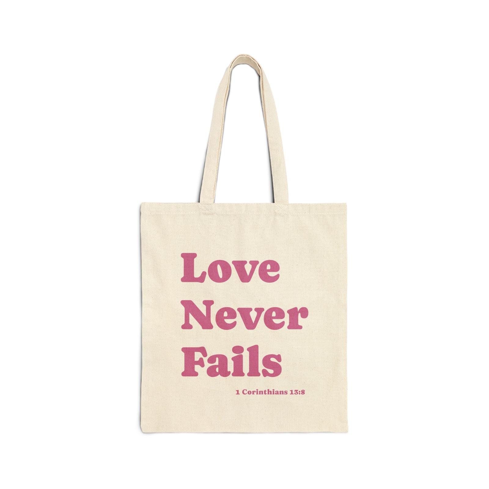 This 100% cotton bag comes in one size – 15" x 16"– perfect for everyday use. The bag features 20" handles, making it easy to carry to church or even while you’re shopping!