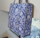 Made by tnishkahandicrafs Delivery from a small business in India Materials: Cotton Translated by Google See in original language The Indian Hand Block Printed Cotton Quilted Women's Handbags from Rajasthan India. This handbag is completely Indian printed on good quality cotton. Cotton quilted travel bag made by Indian Artisans, this cotton quilted shopping bag is totally unique and multi purpose. Use this for your grocery or as a travel bag. Perfect to suit everyone. Item :- Cotton Handbag Material: 100% Cotton Pattern: Floral Print Wash Care - Home Washable Style: Tote Bag Zipper - No Size in Inch:- (12x14x4" , 14x16x4.5" , 16x18x4.5" inch) Product Work: Printed & Quilted Stitched Usage: Cosmetic, Make-up, Travel, Toiletries, Medicine, Accessories, Shopping and much more. Perfect for Beach Visits/ Quick Grocery runs/ Carrying Kids items/ Artist Paint book and Paints /Extra Bag Washable on cold / delicate wash Make a good sustainable gift.