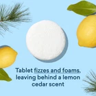 The first plastic-free toilet cleaner tablet that's tough on stains but gentle on the planet. No more harsh chemicals, harmful ingredients or plastic packaging – our tablets work hard with plant-based power. Just drop, brush, and flush! So easy you'll never dread cleaning your toilet again. 100% Bio-Based and Plastic-Free Finally! A toilet cleaner that's tough on grime and gentle on the planet. Our Toilet Bowl Cleaner is fragranced with 100% natural essential oils and made with less harsh chemicals. PLASTIC-FREE, ECO-FRIENDLY TOILET CLEANER TABLETS. The first and only plastic-free Toilet Bowl Cleaner Tablet that's tough on stains, but gentle on the planet. No more harsh chemicals, harmful ingredients, or plastic packaging - our tablets work hard with plant-based power to remove even the hardest toilet stains. EFFECTIVE. Ultra concentrated tablet is proven to power away a range of toilet stains including rust, mineral deposits, limescale and hard water. Tested alongside leading competitors. Scientist developed with over 40 patents and patents pending. EASY TO USE: Just drop, brush, and flush! Drop one tablet into your toilet bowl and watch it fizz and foam. Give it a flush, admire the shine, and refill your Forever Tin when empty. FRESH LEMON CEDAR SCENT. Tablet fizzes and foams and leaves behind a fresh Lemon Cedar scent made with 100% natural fragrance. No chemical smell. CLEAN INGREDIENTS. Plant and mineral-based tablet is 100% bio-based, biodegradable and septic-safe. Made without chlorine bleach, hydrochloric acid, no CTAC, no dyes, plastic-free. EPA Safer Choice, Leaping Bunny Cruelty-Free, Vegan, B Corp Certified, Climate Neutral, USDA Bio-Preferred. If you have any issues with your purchase, contact the Customer Experience team and we’ll make it right!