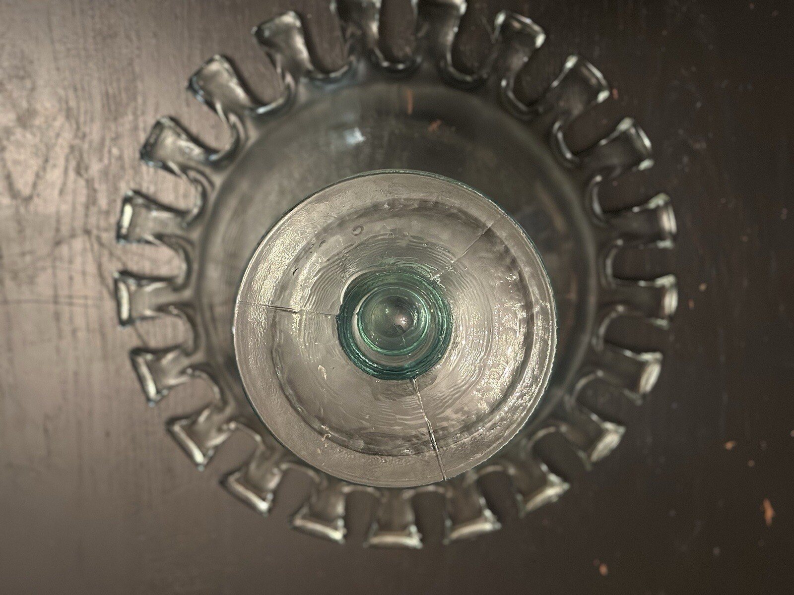 Add a touch of elegance to your dining table with this beautiful Recycled Glass Fruit Bowl. Crafted from high-quality glass, this bowl is perfect for all occasions. The bowl is perfect for serving fruits, salads, or any other dish you desire. The bowl is unmarked, making it difficult to identify the brand. It is a beautiful piece of art glass that will enhance the aesthetic of your table. The bowl is perfect for those who love to use glassware for their meals. It is a great addition to your collection and will surely impress your guests.
