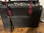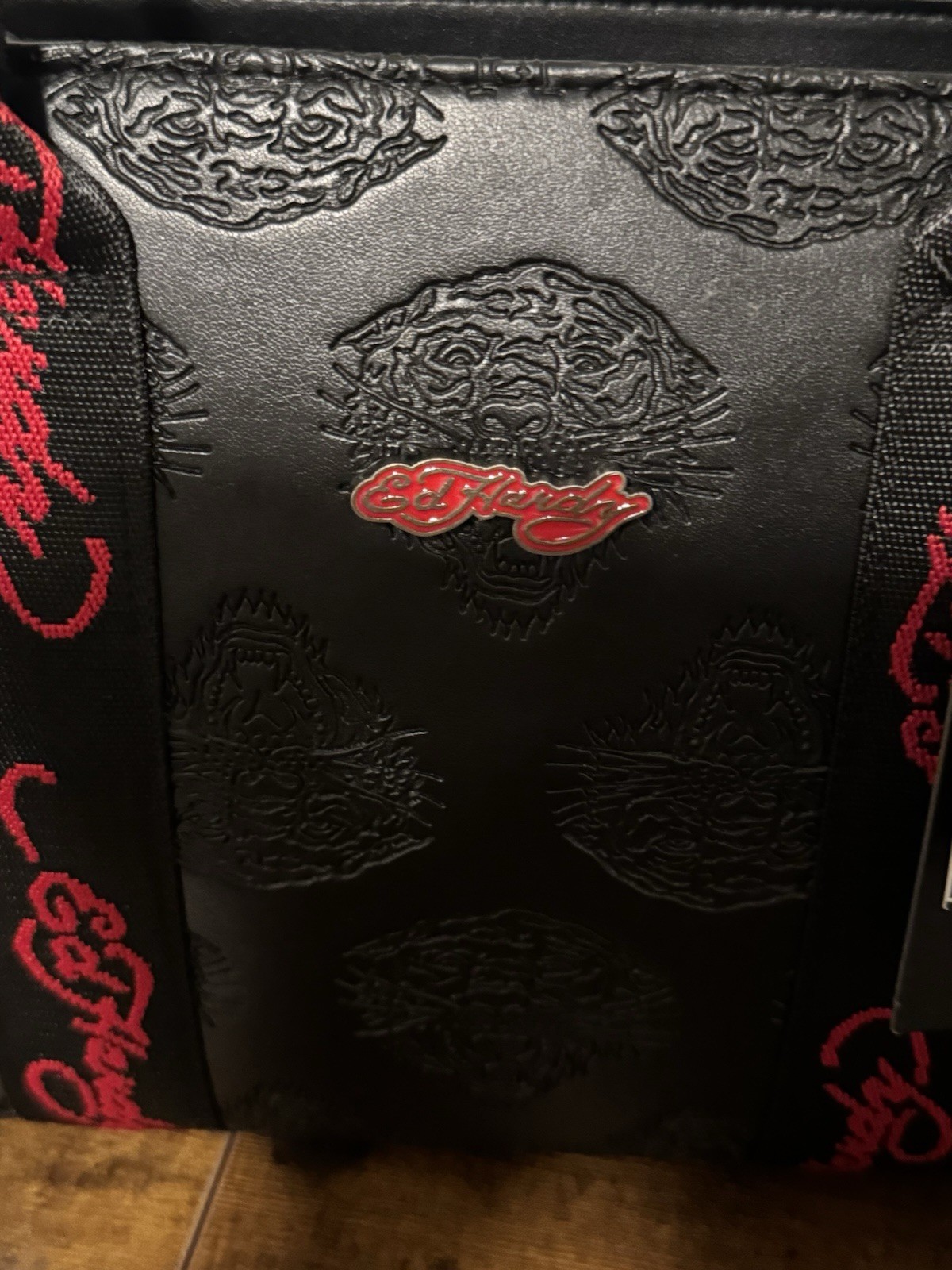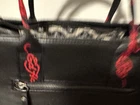 The Ed Hardy Black Tiger With Red Accents Tote Bag is a stylish and eye-catching accessory perfect for women who love bold and unique designs. Made from faux leather with a matte finish, this mini tote features a striking tiger pattern in red and black, with silver hardware accents. The double red and black handles make it easy to carry around, while the zip closure ensures your items are secure. The black fabric lining adds a touch of sophistication, making this tote a trendy addition to any outfit.