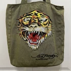 11"w x 13"h x 3"d Handle drop: 10" Open top, double handles, lined, one interior zip pocket 100% cotton Minor signs of wear Great preowned condition
