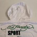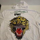 Ed Hardy Sport Hoodie Jacket Mens 3XL, Pit to Pit 28", Shoulder to Hem 33" White, Full Zip, Double Sided Christian Audigier Tiger Tattoo Embroidered Logo Brand New With Tags Condition