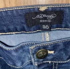 Ed Hardy Jeans Adult 30 Blue Denim New York City Eagle Embroidered Mens. These Ed Hardy jeans are perfect for any man who loves to show off his unique style. The bold embroidery of the New York City Eagle on the back of the jeans makes them a statement piece. The wide-leg style and denim fabric make them comfortable and versatile for any occasion. These jeans are perfect for a casual day out or a night on the town. The regular size type and 32-inch inseam ensure a great fit for any man. Add these jeans to your wardrobe and show off your love for Ed Hardy and New York City. Sold as is in pictures 30/32