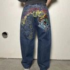 Christian Audigier Denim Ed Hardy Graphic Embroidered Skulls Jeans Navy Size 38 Please refer to photos for all flaws, measurements and details